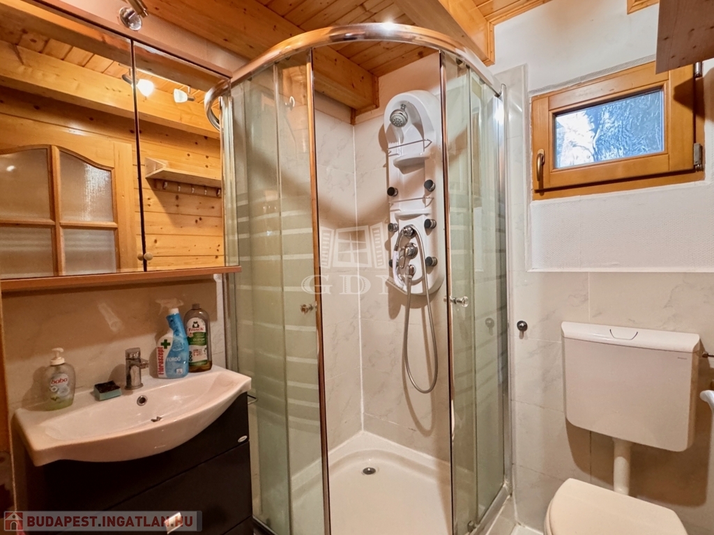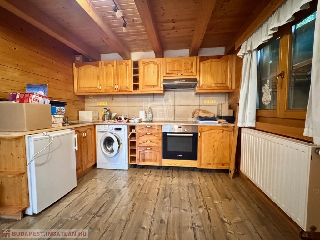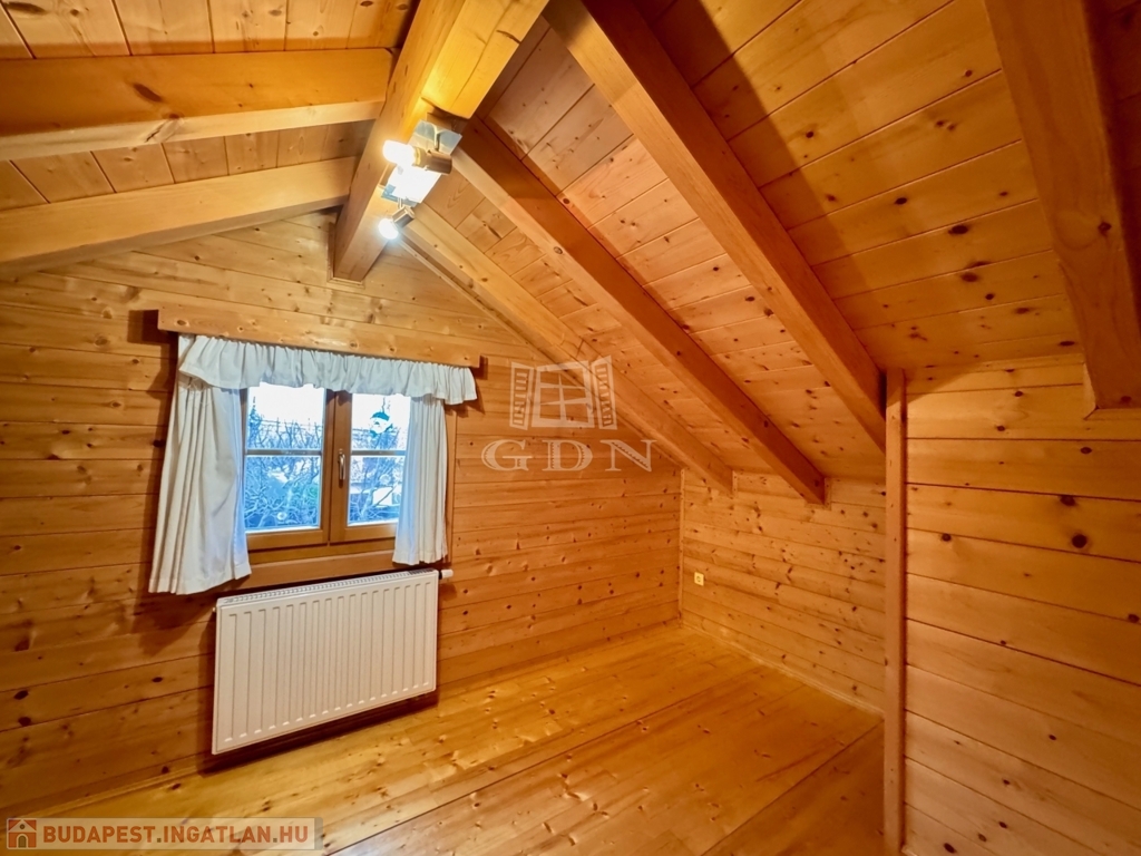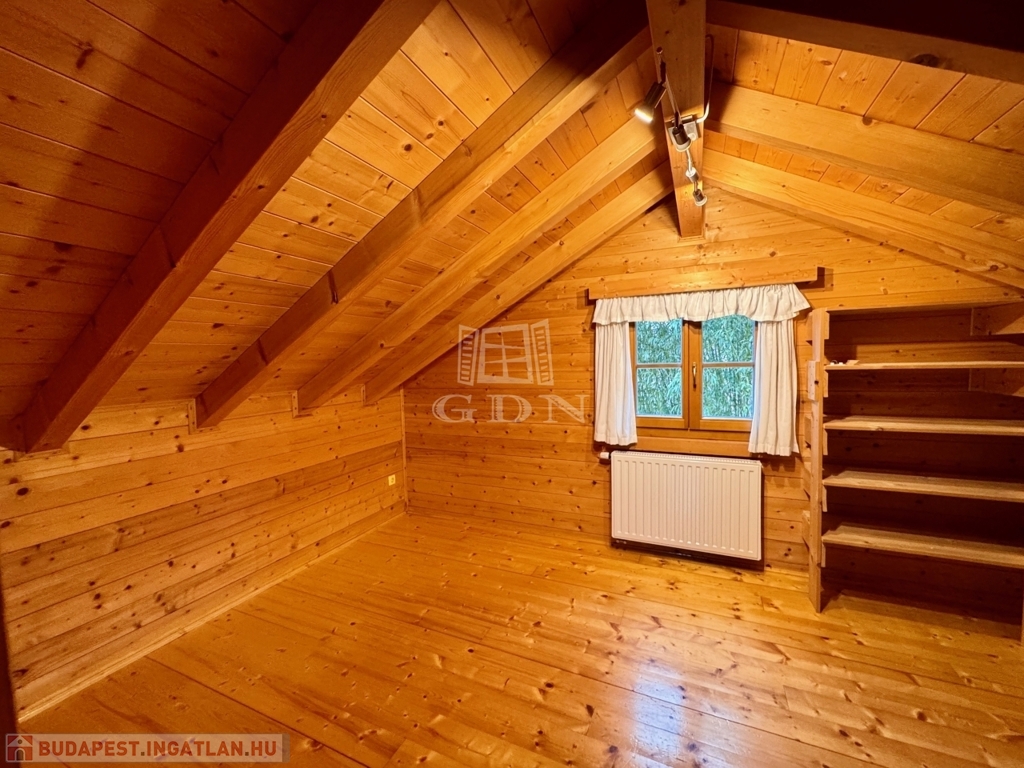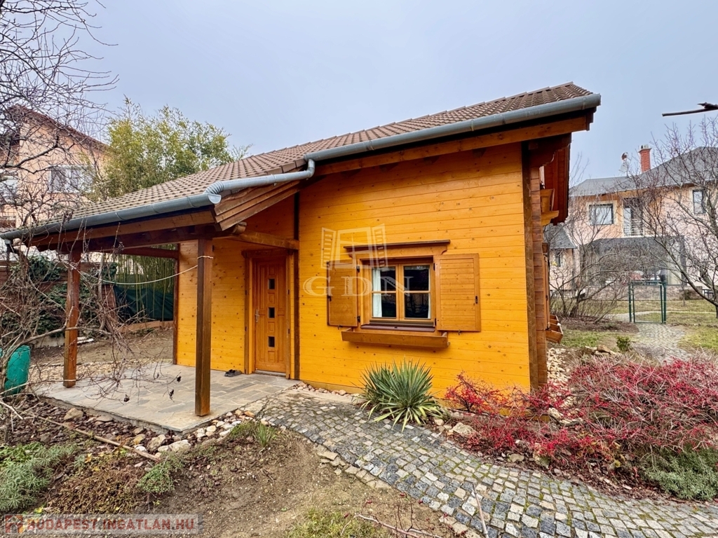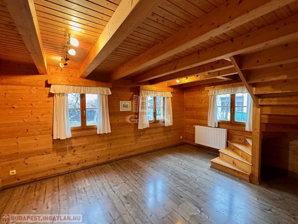 Budaörs - XI. kerület Budapest határán egy osztatlan közös lekerített telekrészen lévő, 70m2-es hasznos alapterülettel rendelkező, nappali + 2 szobás, teraszos, részben bútorozott, 2 szintes faház minimum 1 évre kiadó!