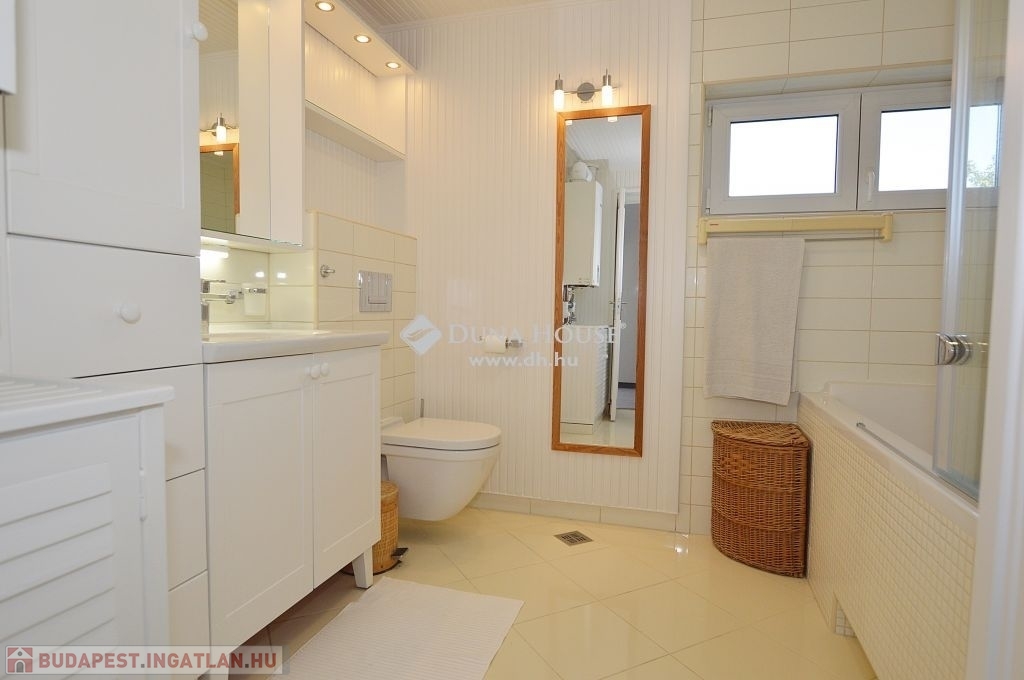KIADÓ frissen felújított, hőszivattyús, napelemes, önálló CSALÁDIHÁZ !!!Budapest II/A. kerületben, Pesthidegkúton, a Horgász-tó közelében, csendes , forgalomtól mentes zsákutcában hosszútávra KIADÓ 220 nm lakóterületű, NAPPALI + 5 szobás családi ház. 2024.-ben az egész ház igényes és teljeskörű felújításon esett át, hőszivattyús , valamint napelemes rendszer került kiépítésre, az ablakok többrétegű hőszigetelő üvegezést kaptak. A földszinti szinten kandallós NAPPALI 40 nm-es NAPOS terasszal, kényelmes külön konyha étkezővel, hálószoba, dolgozószoba, és kádas fürdőszoba került kialakításra.Az ingatlan alagsori szintjén 2 autó részére garázs, tároló, szauna zuhanyozóval, fitneszterem található.A tetőtéri szinten 3 szoba, kádas fürdőszoba, teraszos galéria található.A Francia iskola közelsége, a kiváló lokáció, a BKV járatok közelsége biztosítja a kellemes használatot.Az ingatlan 2 havi kaució és egy havi bérleti díj megfizetése esetén azonnal költözhető.Bérleti díj: 3000 EURÓ/hó + rezsi