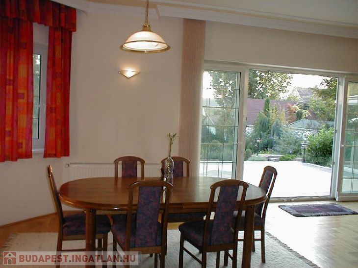500 nöl-es parkosított kertben álló 430 m2-es egyszintes mediterrán típusú igényesen kivitelezett családi ház kiadó.