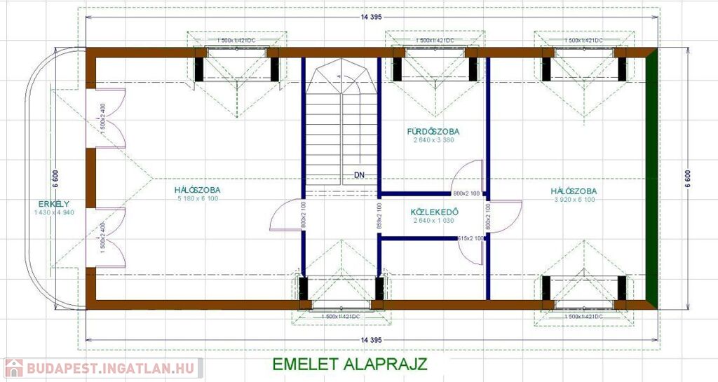 * tetőtér 70 m2: 2 hálószoba, fürdőszoba, közlekedő, lépcsőház, terasz