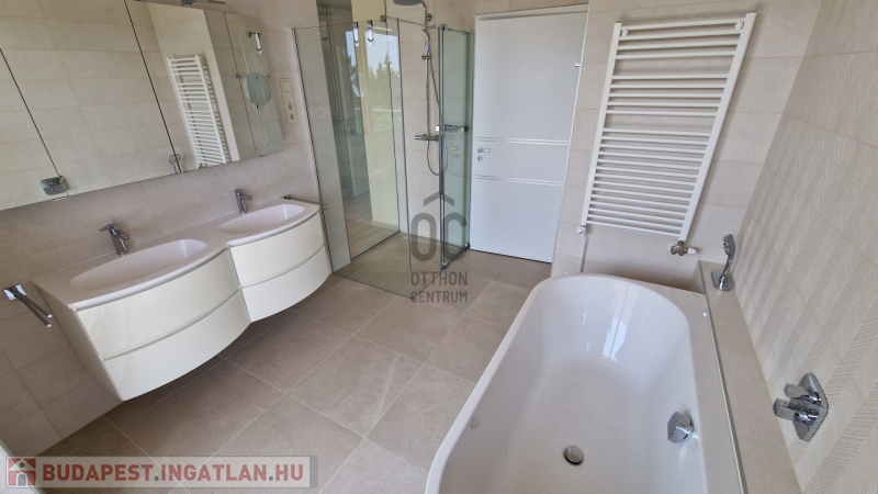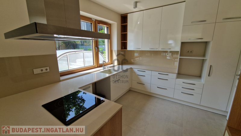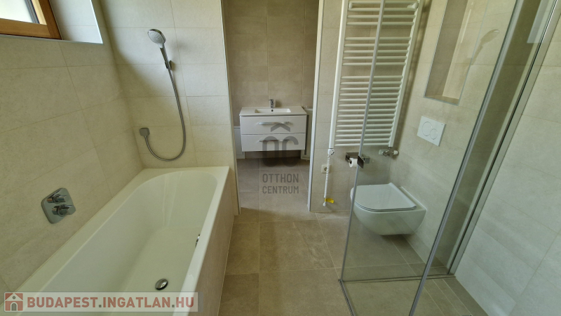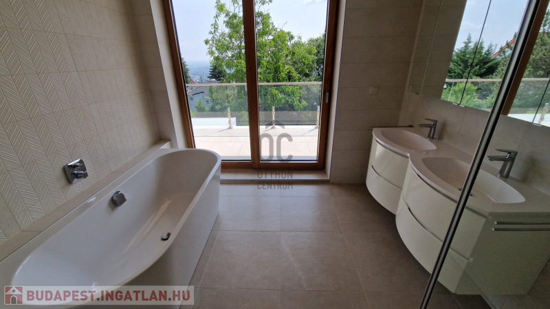 Budapest III. kerület Táborhegyen az Erdőalja úti iskolához közel kiadó egy újépítésű, luxus minőségben kivitelezett ikerházfél.
