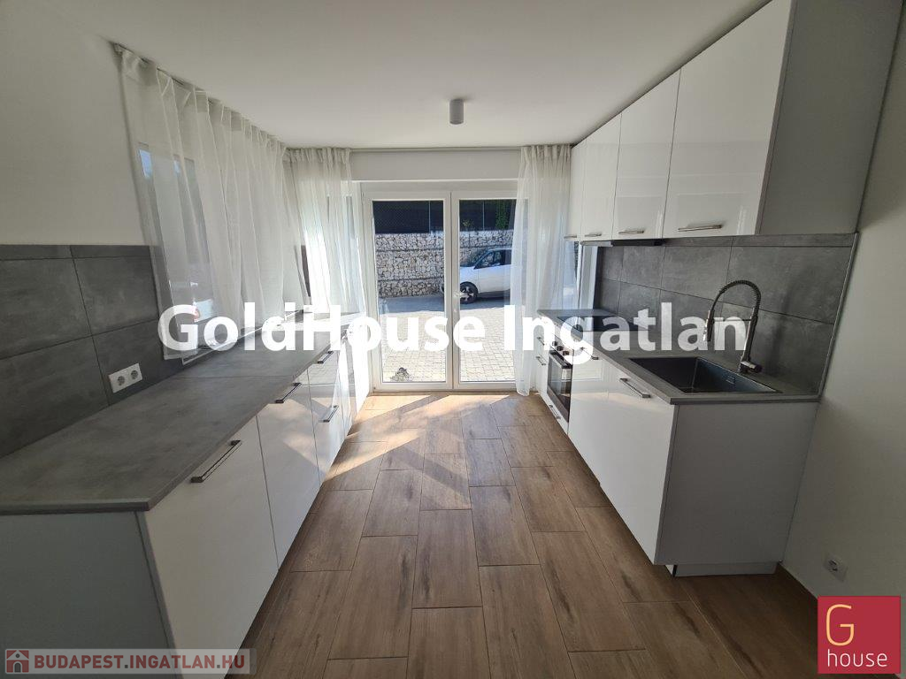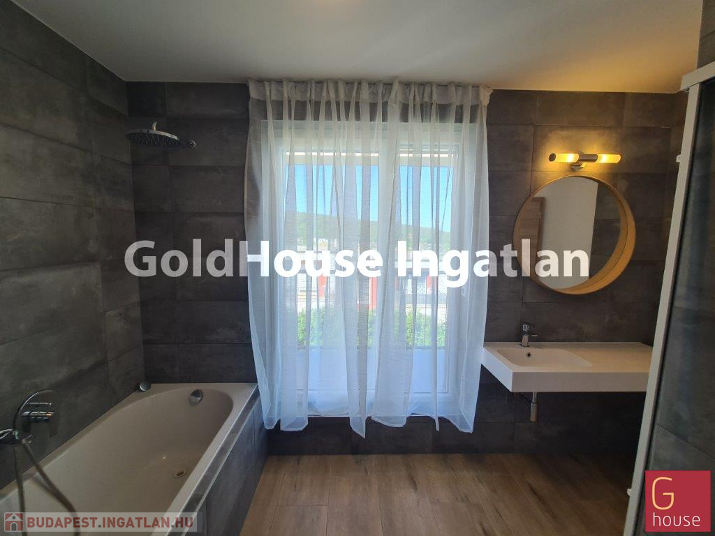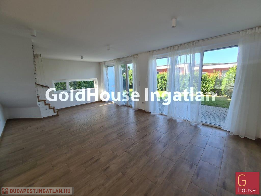 A III. kerület egyik legkedveltebb zöldövezeti részén, az Óarany lakókertben kínálunk hosszú távra bérbeadásra egy kiváló adottságú, 107 m²-es, panorámás, kétszintes lakást. A 2021-ben épült, modern épület földszintjén tágas, napfényes nappali, étkező és konyha, valamint zuhanyzós fürdőszoba és mosókonyha található. Az emeleten három különálló hálószoba, egy fürdőszoba és előtér biztosítja a kényelmet. A lakáshoz összesen három terasz kapcsolódik (15 m², 3,8 m² és 7,4 m²), valamint egy 170 m²-es kizárólagos használatú, körbekerített kert, amely tökéletes kikapcsolódást kínál.