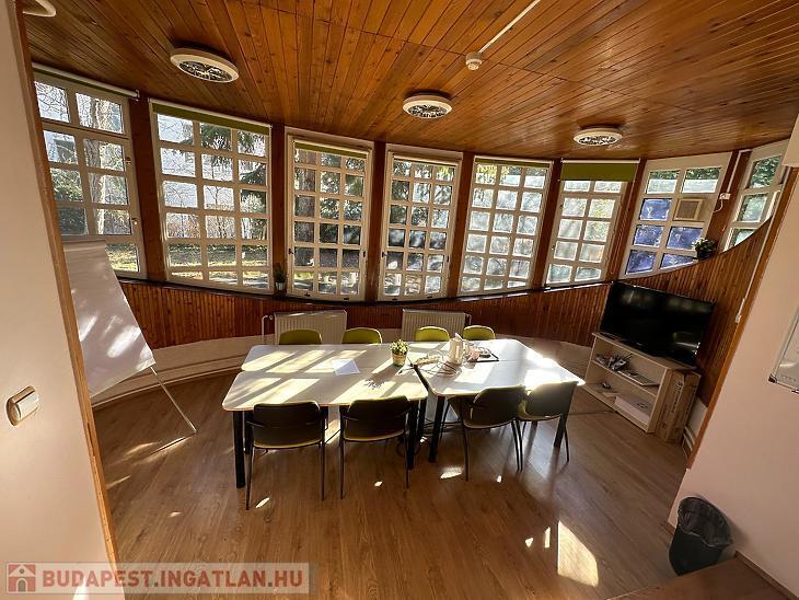 A XII. kerület hegyvidéki részén, Makovecz Tervező Iroda által tervezett, 4 szintes, 15 szobás, jó állapotú, többfrontos, napos, világos, egyedi megjelenésű irodaház hosszútávra kiadó, melyet a bérlő felújíthat igényei szerint.