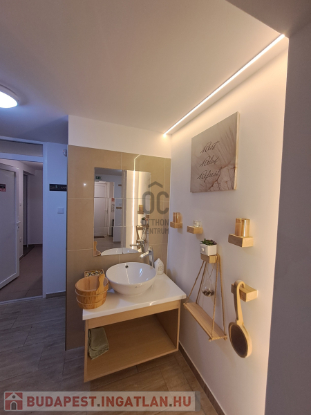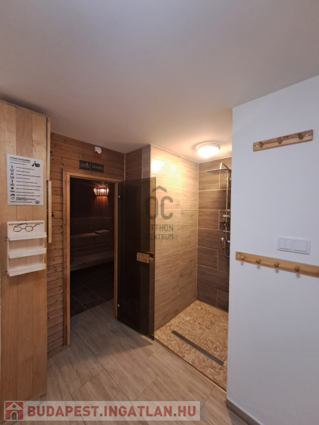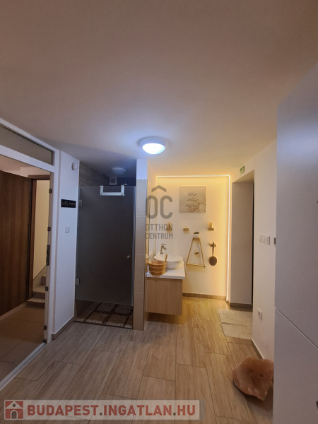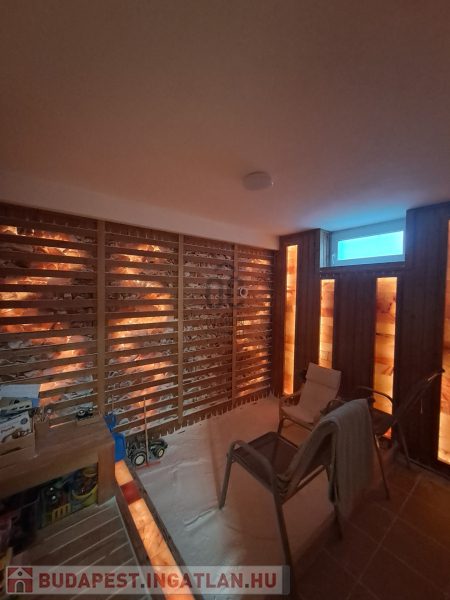 wellness részleg a pinceszinten:egy gerenátorral működtetett sóbefúvókkal felszerelt sóbarlang, egy 12 személyes újszerű állapotú finn szauna, két zuhanyzó, öltözők és két vendégwc, fűtött tepidárium ( kőpad) és pihenőrészleg.