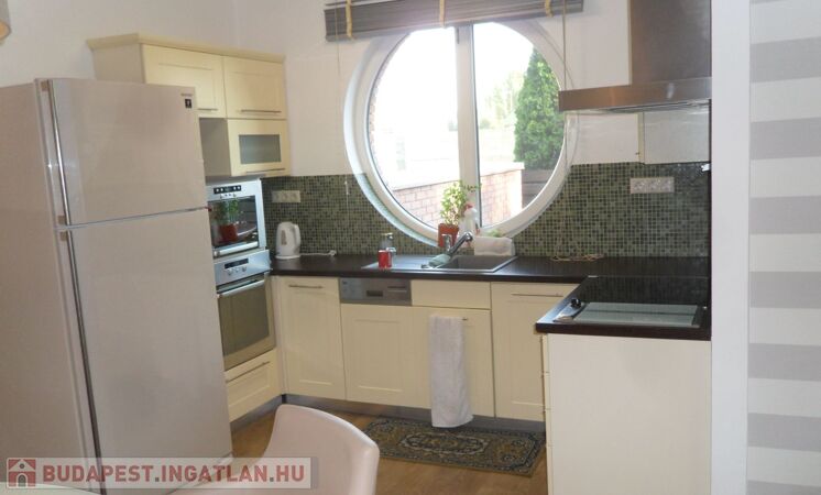 Bútorozva, teljes gépesítéssel, (mosogatógép, mikrohullámú sütő, mosógép szárítóval, porszívó stb). A konyhában beépített sütő, mikrohullámú, kerámialapos tűzhely, mosogatógép.