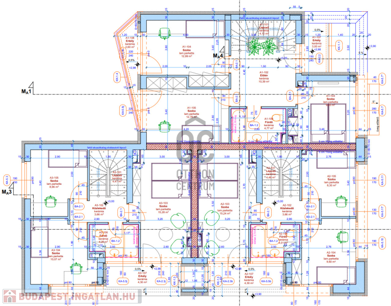 - Modern gépészet: szabályozható hűtés/fűtés (fal- és padlófűtés), automata szellőztetőrendszer