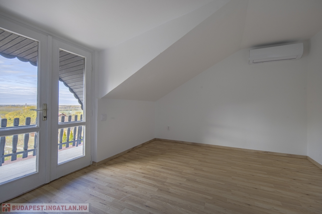 A teraszok és a szobaablakok délnyugati fekvésűek, az emelet panorámás. Gáz a telken nincs, a fűtés a földszinten és az emeleten is inverteres klímával van megoldva.