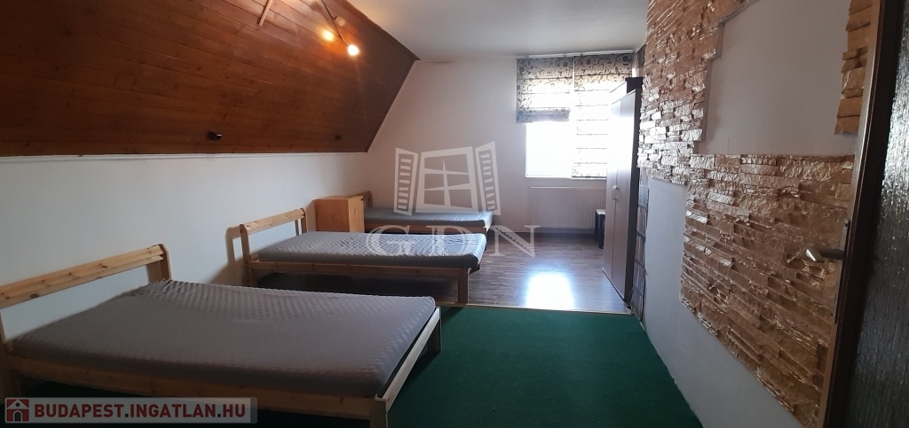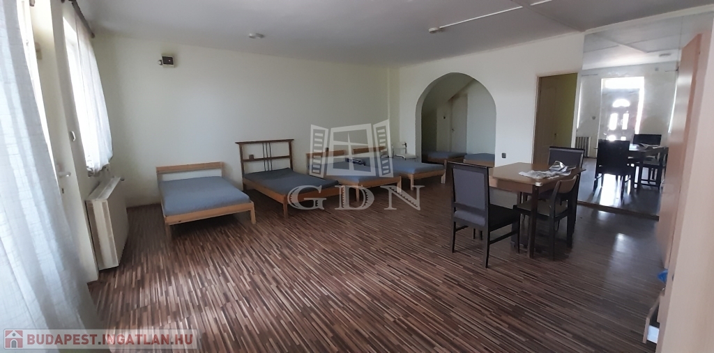 A kertes ház, csendes,de mégis jó helyen lévő ,belső két szintes, össz. 150nm-es, nappali + 5 szobás 13 férőhellyel hosszú távra kiadó.