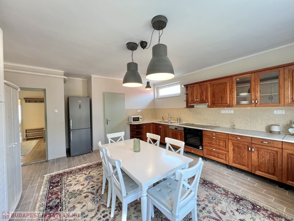 Kaposváron a Deseda tó közelében, teljeskörben igényesen felújított és berendezett 128 m2-es - akár azonnal költözhető - családi ház hosszú távra kiadó. A lakóházban 3 szoba, előszoba, konyha beépített bútorral és gépekkel-étkező, nappali, 2 fürdőszoba, wc, mosókonyha helyiségek kerültek kialakításra. Az épület teljes energetikai korszerűsítésen esett át, a fűtése modern Viessmann típusú gázkazánnal, illetve a nappaliban található hangulatos kandallóval megoldott, a meleg víz ellátást villanybojler biztosítja, továbbá 12,92 kWp teljesítményű napelemek kerültek a tetőn felszerelésre. A rendezett udvarban 1 személyautó részére garázs, illetve melléképület-gazdasági épületek találhatóak. A bérleményt a tulajdonosa minimum 1 éves időtartamra kívánja bérbe adni, a dohányzás nem engedélyezett. Telek: 4.194 m2 - Bérleti díj: 400.000.- Ft/hó + rezsi + 2 havi kaució