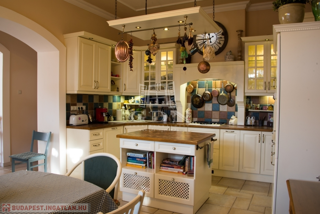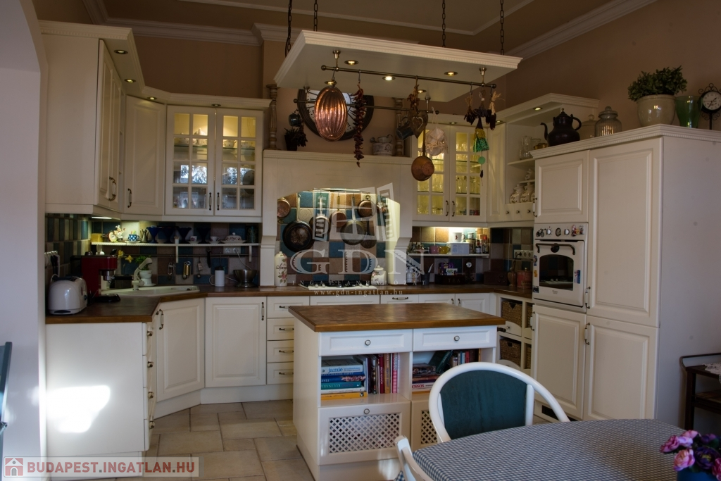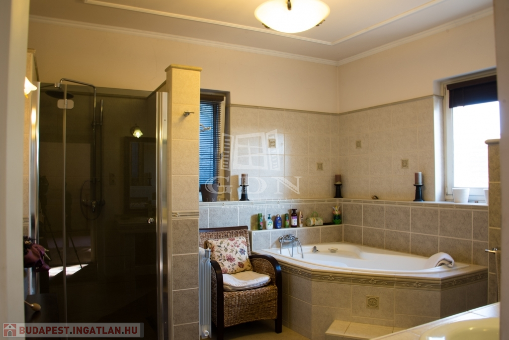 További jellemzők: fúrt kút, 30 nm kerékpártároló, szerszámtároló, utcafronthoz képest magasabb fekvés, 10 cm szigetelés, 10 éves burkolatok, rózsafa parketta, 3 cm antikolt mészkő teraszburkolat, cirkó fűtés padlófűtéssel kombinálva.