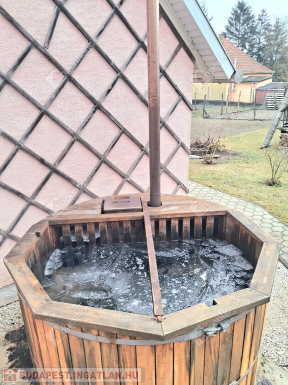 Belülről tágas, melegséget nyújtó helységek fogadnak minket, ahol remekül lehet nagyobb társaságot is fogadni, vagy akár kettesben nézni a cserépkályhát. Állandó fűtése gázzal megoldott.. Kettő szoba különálló fürdőszoba káddal ,zuhannyal felszerelt. A konyha egybe lett kötve az étkezővel, illetve szabad átjárás biztosított a társalgó részhez is. Mellette kamra kapott helyet. A kertről nem érdemes mit írni, a képek és a valóság magáért beszél. A terasz és a mellette lévő fával fűtött dézsa fürdő 675 négyzetméter üde zöldterület remek kikapcsolódásra alkalmas.A kert rendbetétele biztosított.
