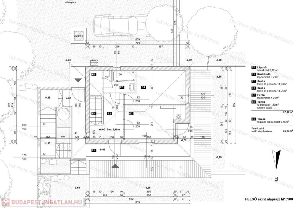 – Emelet: 2 különnyíló szoba, fürdőszoba