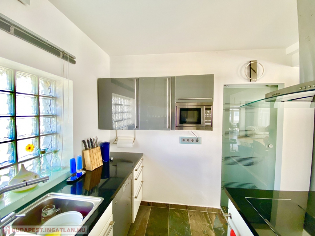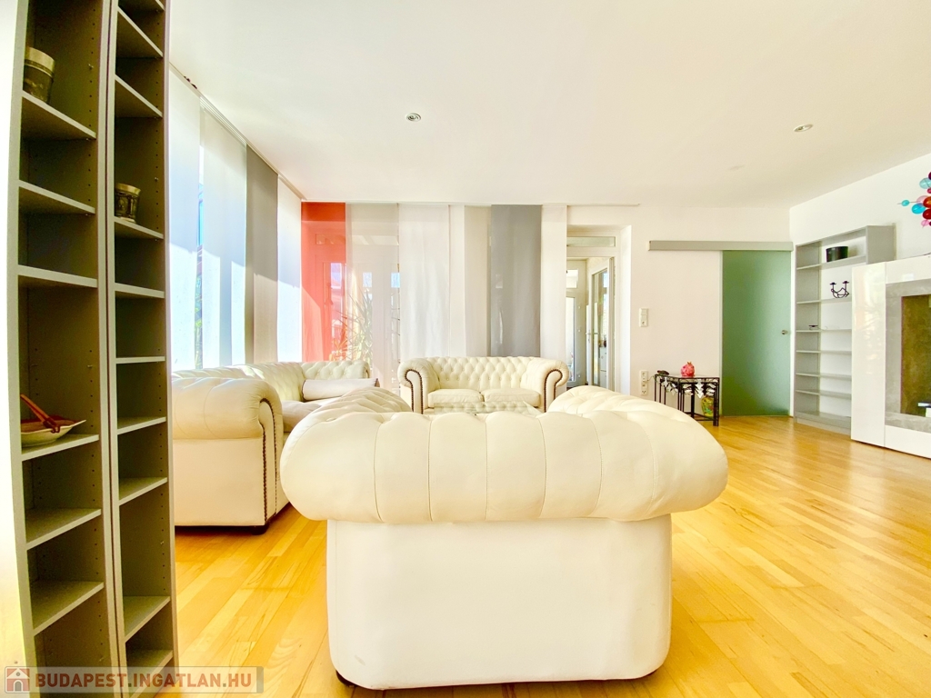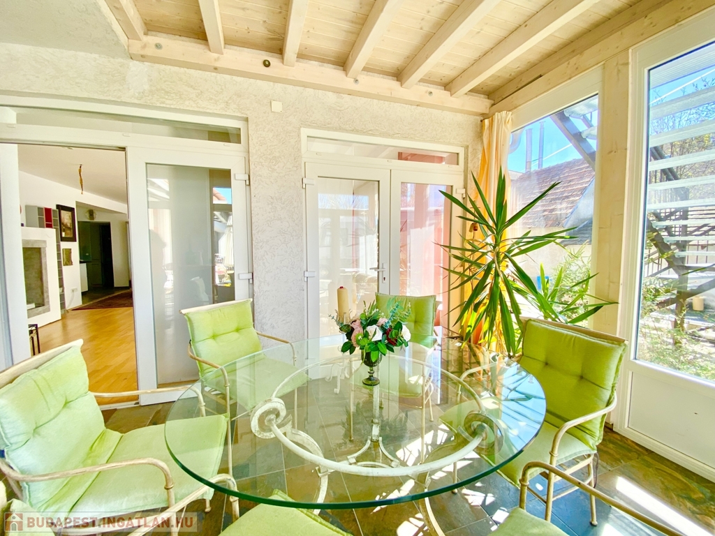 A nappalihoz kapcsolódó terasz – illetve télkert – ideális helyszínt kínál a pihenésre, feltöltődésre, vagy akár baráti, családi összejövetelekhez is, egész évben élvezhető hangulattal.