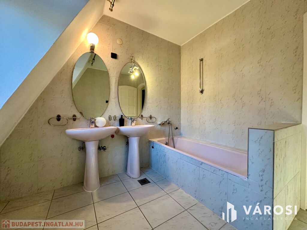 Az ingatlanban amerikai konyhás nappali, 3 külön nyíló hálószoba, előszoba, 3 fürdőszoba, terasz, dupla garázs és több kiszolgáló helyiség található.