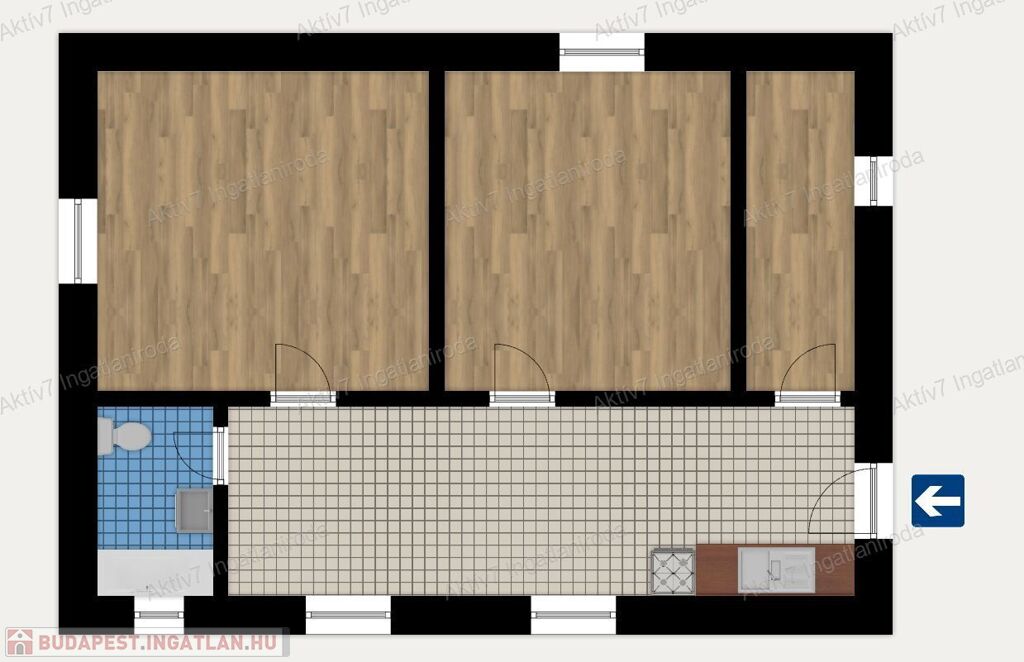 - Konyha – étkező, 2 hálószoba, gardrób, fürdő