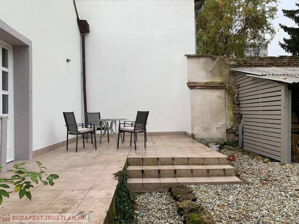 A 100 m2-es házrész egy 4 lakásos műemlék jellegű társasház közös udvarán belül van, kb.200 m2 saját kertrész és 25 m2 terasszal kialakítva. A lakásban 3 szoba, hatalmas étkező,társalgó,ami plusz egy szobának is használható, konyha, fürdőszoba, külön wc és kamra lettek kialakítva. Az egyik szoba közvetlen terasz és kertkapcsolatos, ezzel is fokozva a kényelmet és a luxust. A terek szellősek, jól használhatóak.