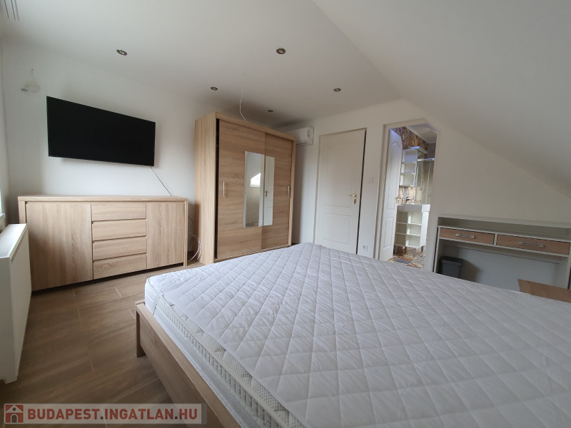 Kiadó Vecsés , kertvárosi részén 2018-ban teljesen felújított, 200 nm-es kétszintes családi ház, önálló kertrésszel. Nappali+ 5 szobás, szobánként saját fürdőszobával.Nagy közös nappali, konyha ebédlővel, rendezett kerttel. A kertben van egy melléképület, ahol egy raktár és egy mosókonyha van kialakítva. Gépesített, jól felszerelt konyha, minden szoba légkondicionált, bútorozott, tv-vel felszerelt, fűtése gáz-cirkóval megoldott. Kertben fedett 2 autós beálló. A kerten belül még 2 autónak van parkolási lehetőség.