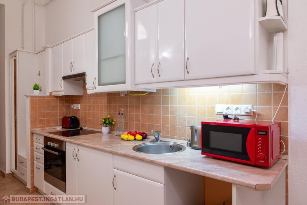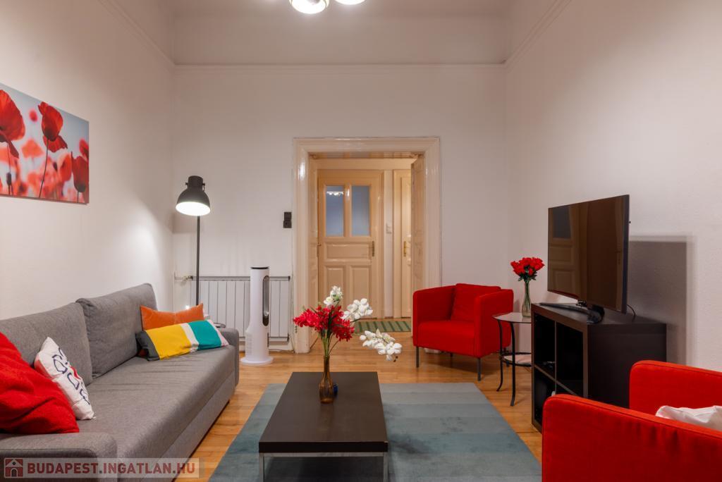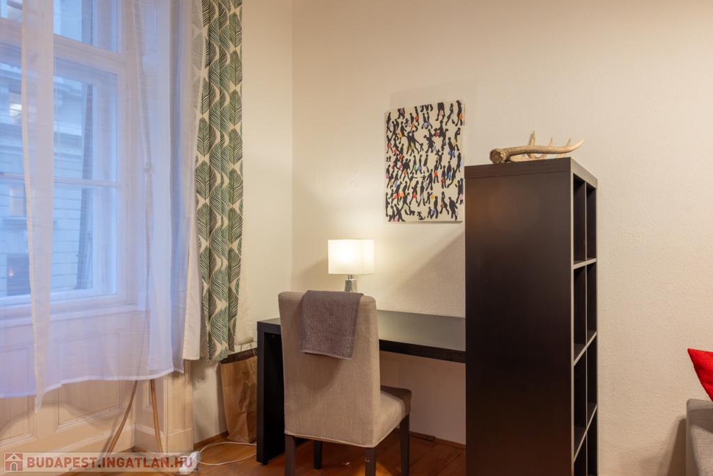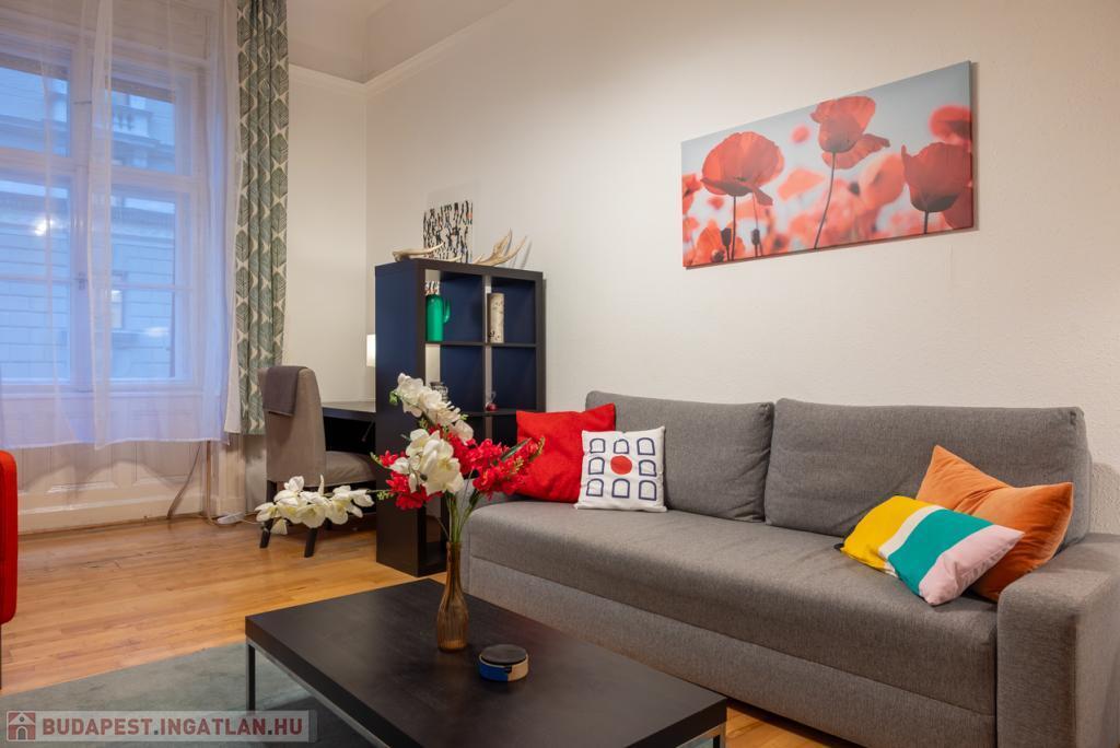 Kiadó Budapest Belvárosában a Hajós utcában, az Operára néző 54 m-es, igényesen berendezett, nappali + 1 hálószobás lakás, június 1-től, rendezett, liftes ház 1. emeletén. RÖVID és HOSSZÚ távra is.