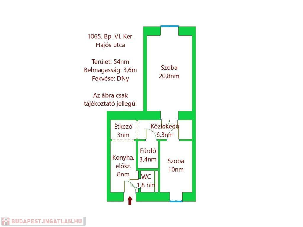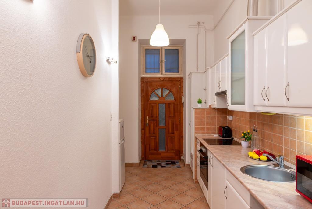 For rent in one of the most popular streets of Budapests District VI, Hajós Street, wiev to the Opera House: a 54 sqm, tastefully furnished, 1-bedroom apartment on the 1st floor of a well-maintained building with an elevator.