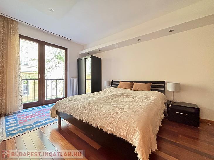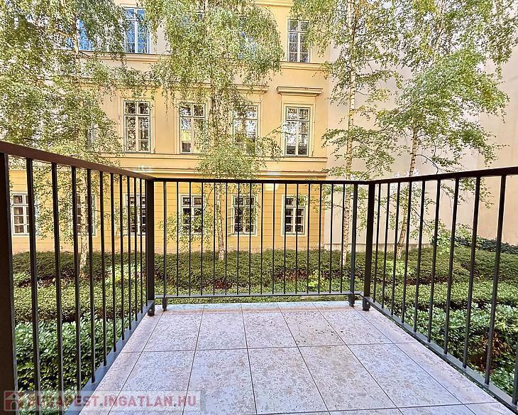 Az erkély a csendes belső udvarra néz, így a város közepén is nyugalom várja az új tulajdonost. A ház szolgáltatásai – konditerem, szauna, jakuzzi – tovább növelik a mindennapi komfortot.
