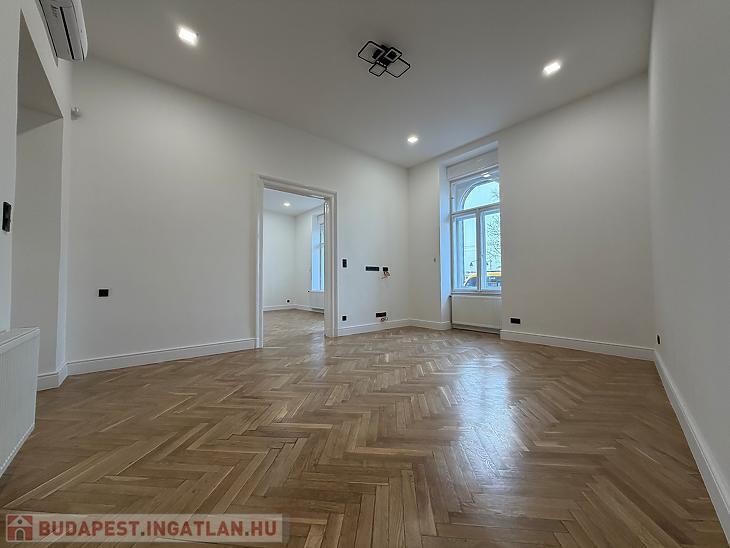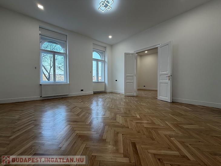Kiadó egy kivételes adottságokkal rendelkező, 100 m²-es, teljes körűen felújított lakás Budapest I. kerületének egyik legkedveltebb részén, Vízivárosban, a Bem József téren.