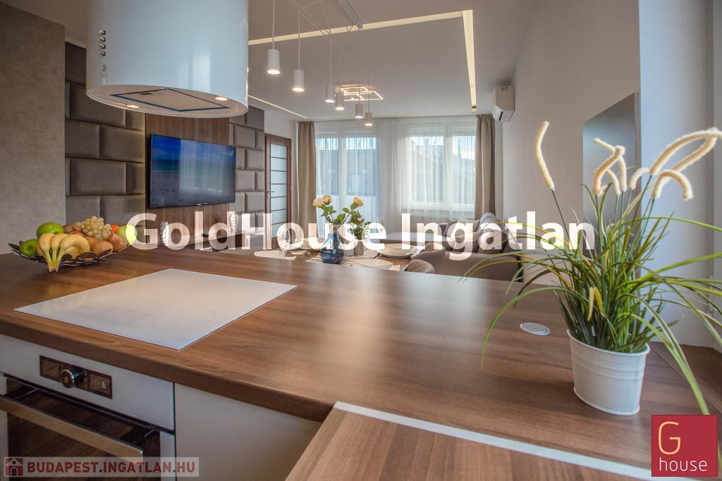 A lakás berendezett,gépesített okos otthon, várja első bérlőjét.
