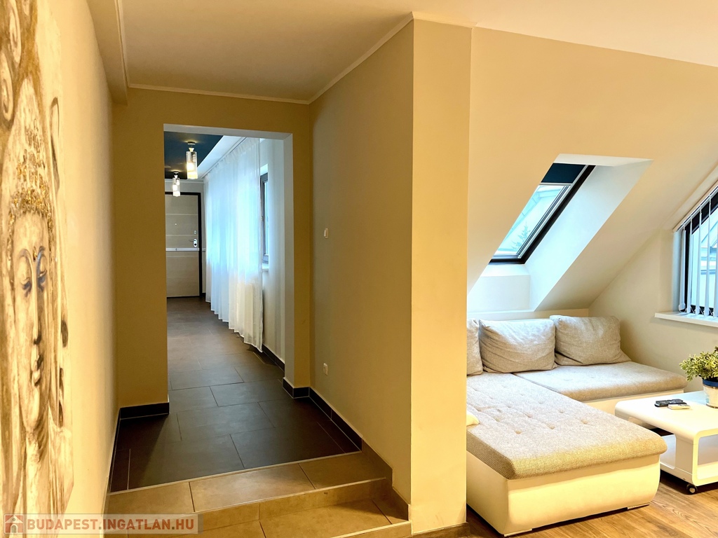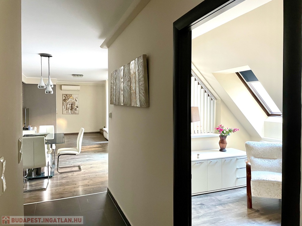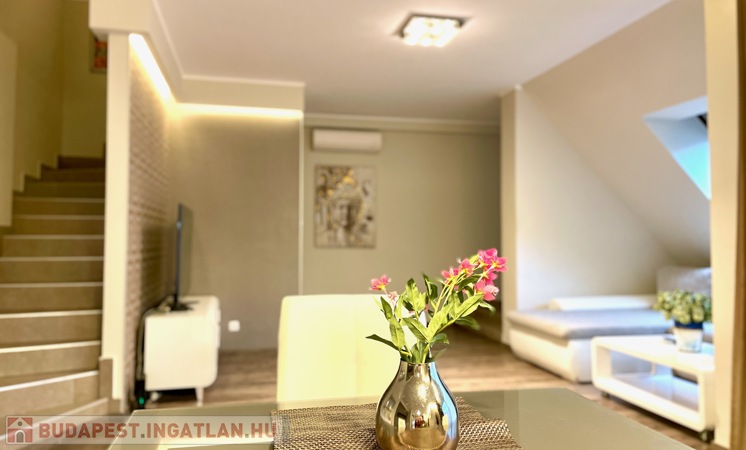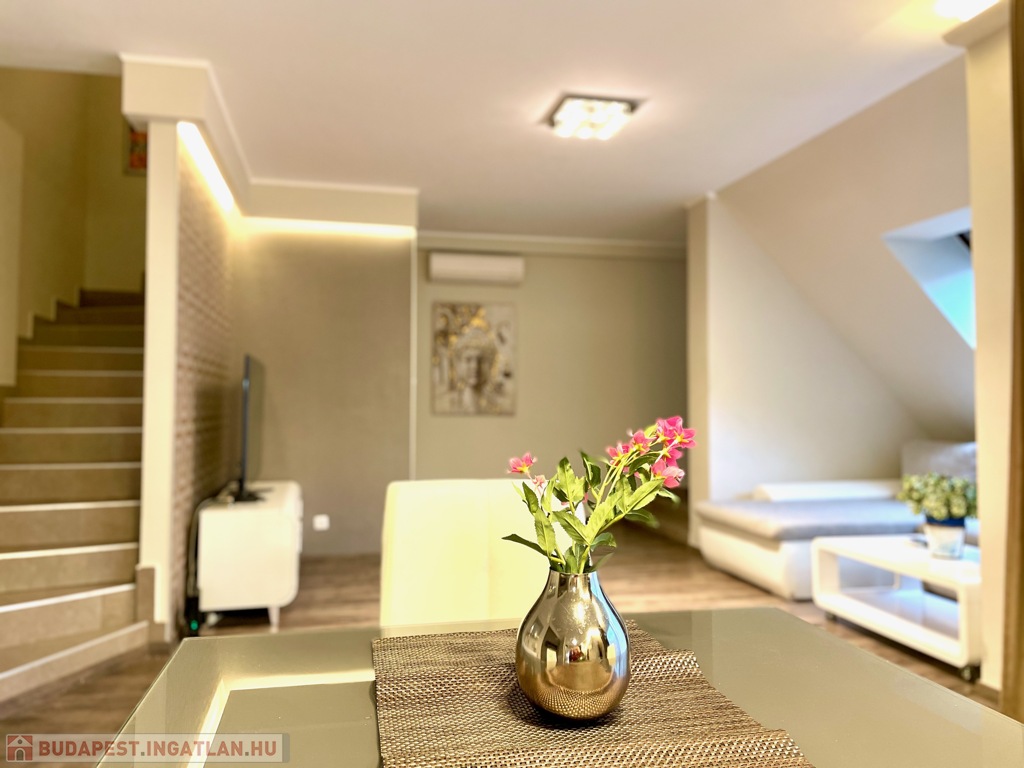 Available for long-term rent in one of Buda’s most desirable locations – Erőd Street, District II – this bright, two-level, 130 m² luxury apartment is situated on the 4th floor of a newly refurbished building, fully furnished and equipped with premium appliances.