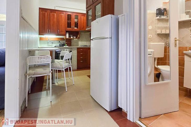 A Mammut bevásárlóközpont közvetlen közelében, a Csalogány utca tetején kínálunk kiadásra egy 48 négyzetméteres, társasháztól független lakást, amelyhez egy kizárólagos használatú, körülbelül 20 négyzetméteres, csendes kertrész is tartozik. A kertben egy 3 négyzetméteres, praktikus faház is helyet kapott, amely kiváló tárolási lehetőséget nyújt.