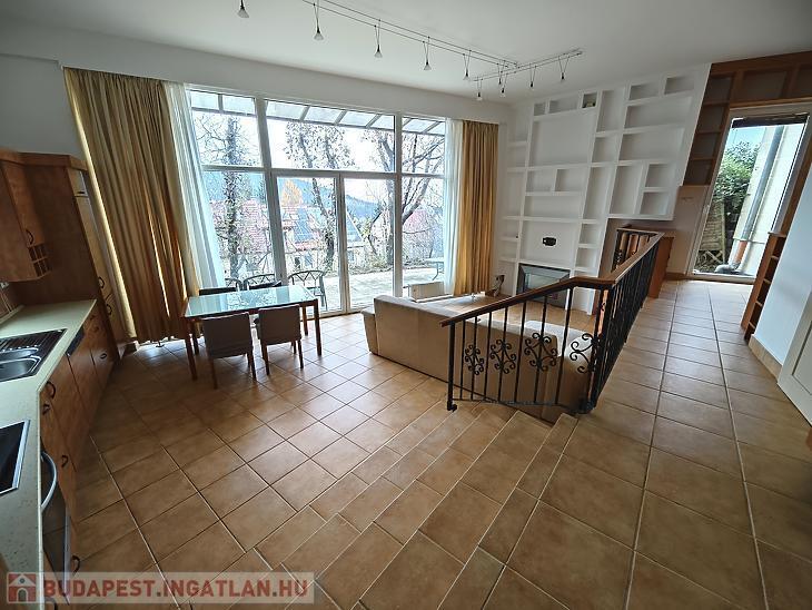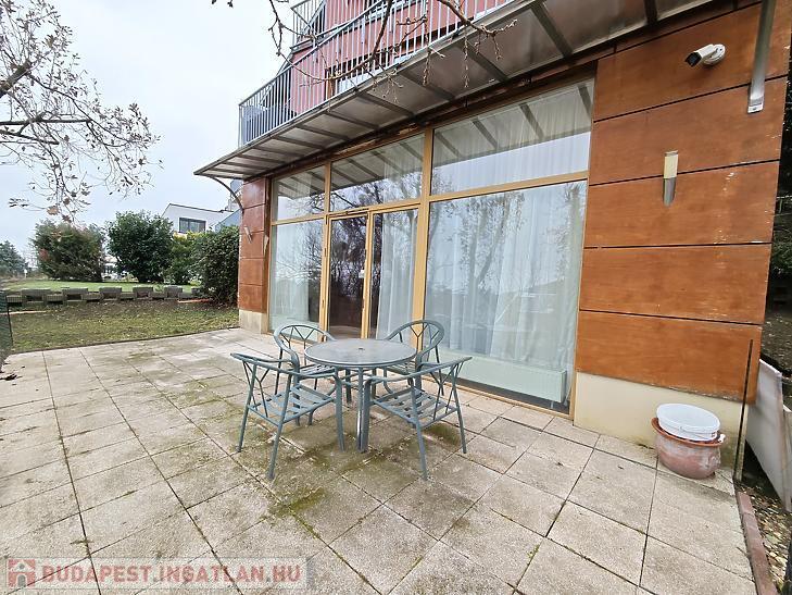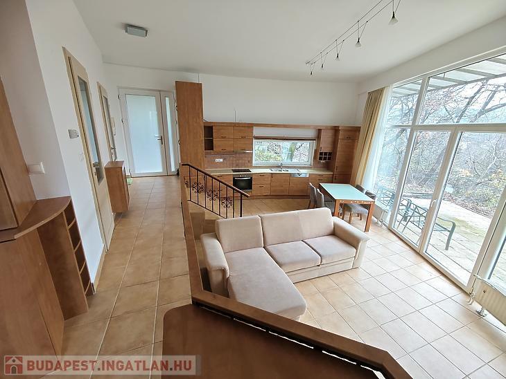 Zöldmálon zsákutcában, erdő szomszédságában kiadó egy kevés lakásos újszerű társasházban egy 1,5 szobás, nagy teraszos, közvetlen kertkapcsolatos lakás. Bútorozott, gépesített konyhával, házközponti fűtés egyedi méréssel (padlófűtés és radiátoros hőleadókkal), hatalmas ablakokkal.
