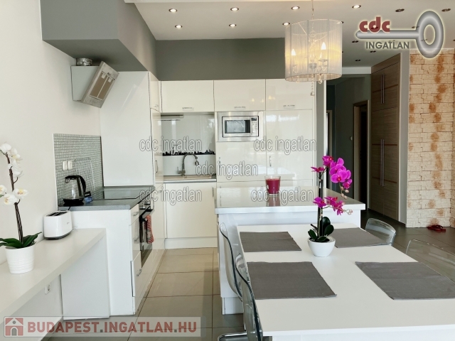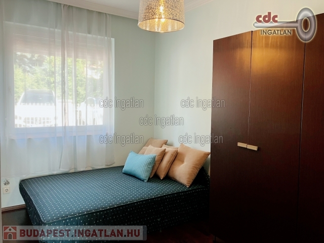 II. kerületben, Csatárka és Pálvölgy határában egy kisforgalmú, csendes utcában kiadó egy kis lakóközösségű társasház első emeleti lakása. Luxus minőségben felújított, világos, jó hangulatú, minőségi konyhával, ízlésesen berendezett. A 95 m2-es, nappali + 2 hálószobás, teraszos ingatlan rendkívül jó beosztású. A hálószobák külön nyílnak, az amerikai konyhás nappalihoz tartozik a 10 m2-es, kertre néző, panorámás terasz. A fürdőszobában kád és zuhanyzó is van, valamint egy wc és egy bidé. Közvetlen mellette van még egy wc kézmosóval. A lakás része még egy ablakos gardróbhelyiség is. Az ingatlan riasztóval ellátott, légkondícionált, fűtése cirkós, a nappali kandallós. A közös használatú kert folyamatosan gondozott, egy rendszeresen tisztított medencével is rendelkezik, melyet a lakók közösen használhatnak, csakúgy, mint a grillezőt. Parkolási lehetőség van a teremgarázsban, a kertben van egy kocsibeálló és még egy a ház előtt is. Az ingatlan minimum 1 évre kiadó, 2 havi kaució szükséges. A rezsi fogyasztás alapján fizetendő, a közös költség 100 Euro. Kisállatot nem lehet hozni, a dohányzás tilos az ingatlanban.