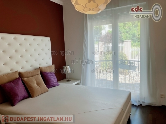 II. kerületben, Csatárka és Pálvölgy határában egy kisforgalmú, csendes utcában kiadó egy kis lakóközösségű társasház első emeleti lakása. Luxus minőségben felújított, világos, jó hangulatú, minőségi konyhával, ízlésesen berendezett. A 95 m2-es, nappali + 2 hálószobás, teraszos ingatlan rendkívül jó beosztású. A hálószobák külön nyílnak, az amerikai konyhás nappalihoz tartozik a 10 m2-es, kertre néző, panorámás terasz. A fürdőszobában kád és zuhanyzó is van, valamint egy wc és egy bidé. Közvetlen mellette van még egy wc kézmosóval. A lakás része még egy ablakos gardróbhelyiség is. Az ingatlan riasztóval ellátott, légkondícionált, fűtése cirkós, a nappali kandallós. A közös használatú kert folyamatosan gondozott, egy rendszeresen tisztított medencével is rendelkezik, melyet a lakók közösen használhatnak, csakúgy, mint a grillezőt. Parkolási lehetőség van a teremgarázsban, a kertben van egy kocsibeálló és még egy a ház előtt is. Az ingatlan minimum 1 évre kiadó, 2 havi kaució szükséges. A rezsi fogyasztás alapján fizetendő, a közös költség 100 Euro. Kisállatot nem lehet hozni, a dohányzás tilos az ingatlanban.