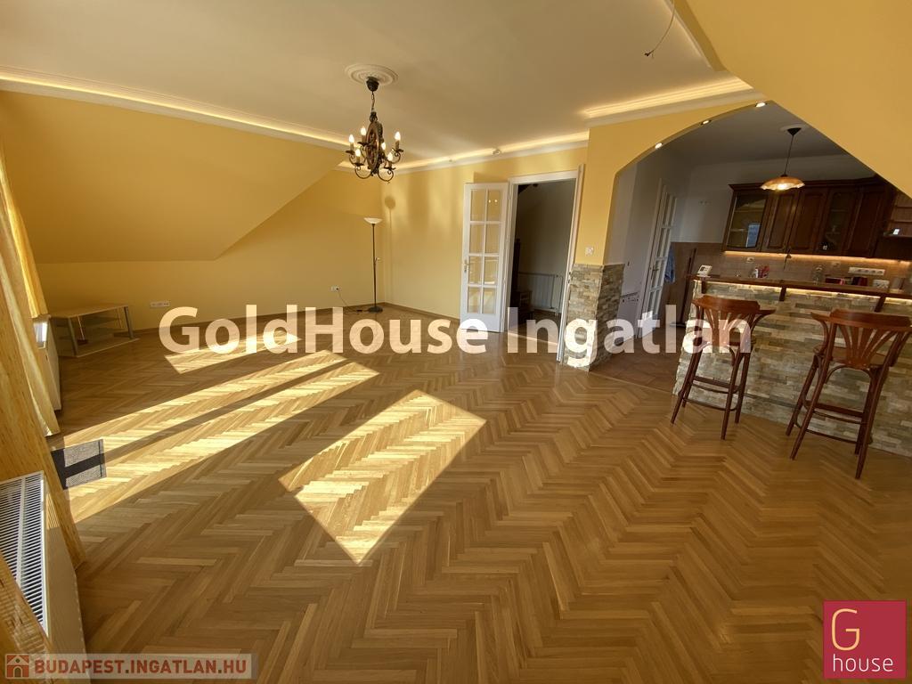 Az ingatlan 3 lakásos társasház legfelső szintjén található. Belső 2 szintes 110 m2 + tetőtér 50 m2-es.