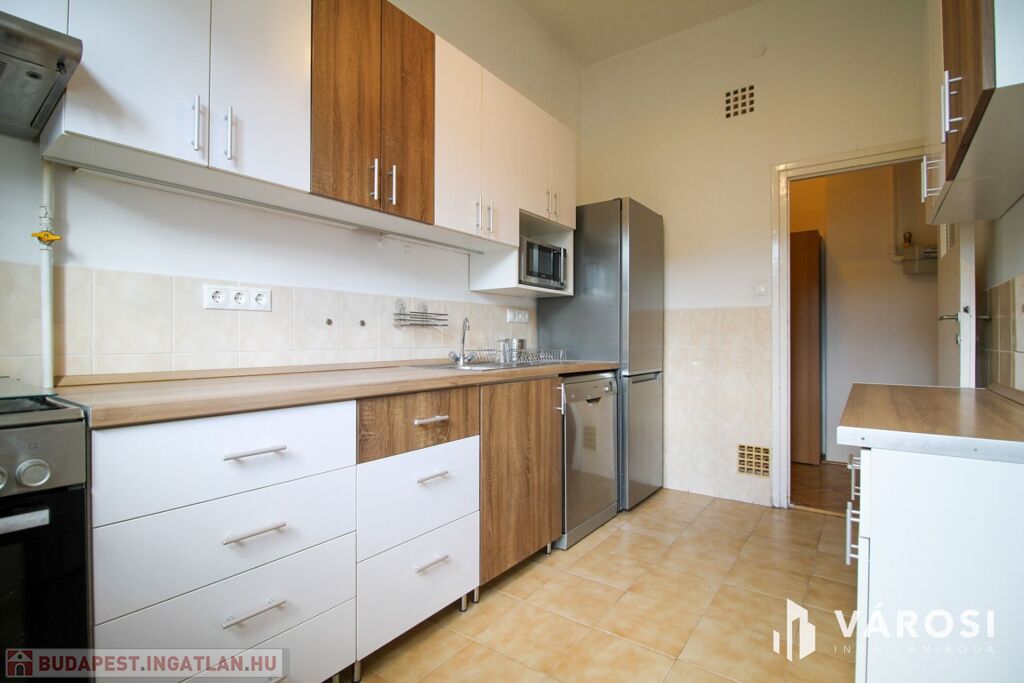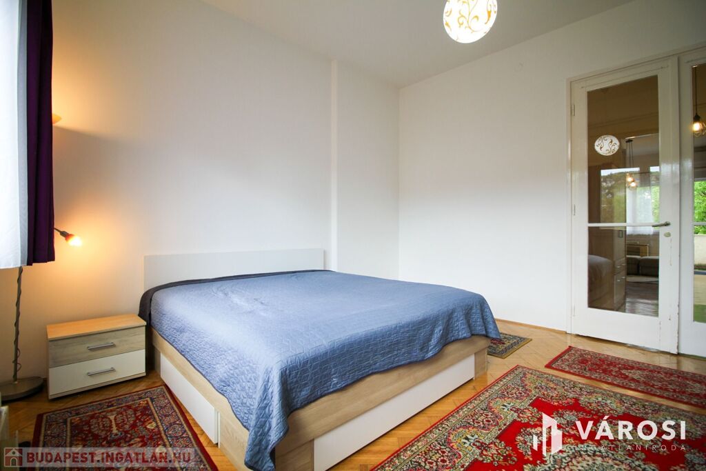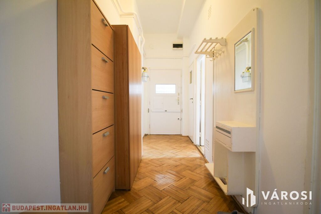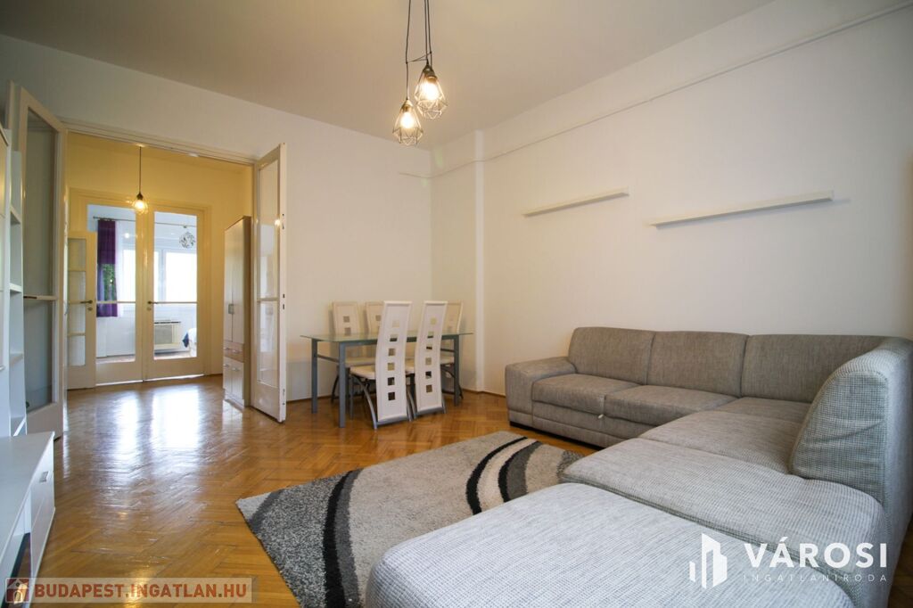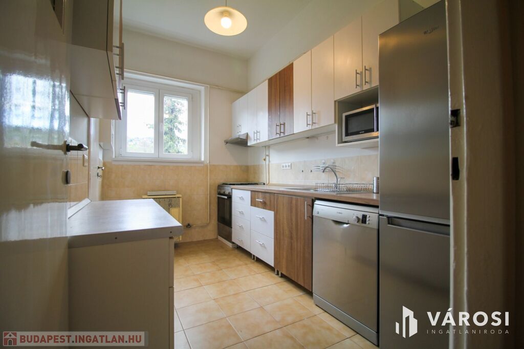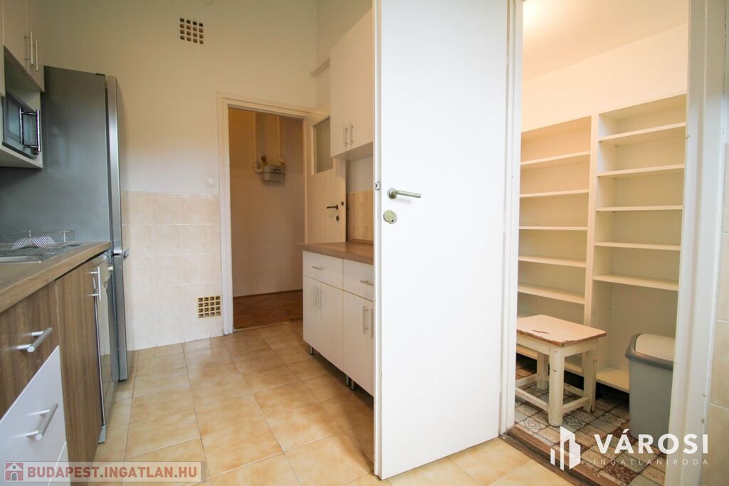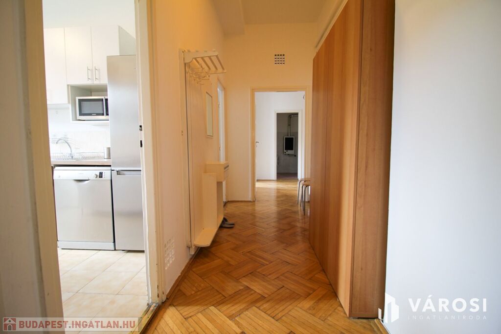 Teljesen bebútorozva és gépiesítve bérbe vehető. A három szoba úgy van kialakítva, hogy az egyiket nappaliként, a másikat hálószobaként, a félszobát pedig dolgozószobaként lehet hasznosítani. A wc külön van a fürdőkádas fürdőszobától. A modern konyhából pedig nyílik egy kamra. A hőmérséklet gázkonvektorral és klímával szabályozható. A nyílászárók újak és jól szigetelnek, az ablakok redőnyözöttek. Erkélyek találhatóak nyugati és keleti irányba, az egyik belső udvarra és a budai hegyekre néz, a másik zöldesített, csendes utcára.