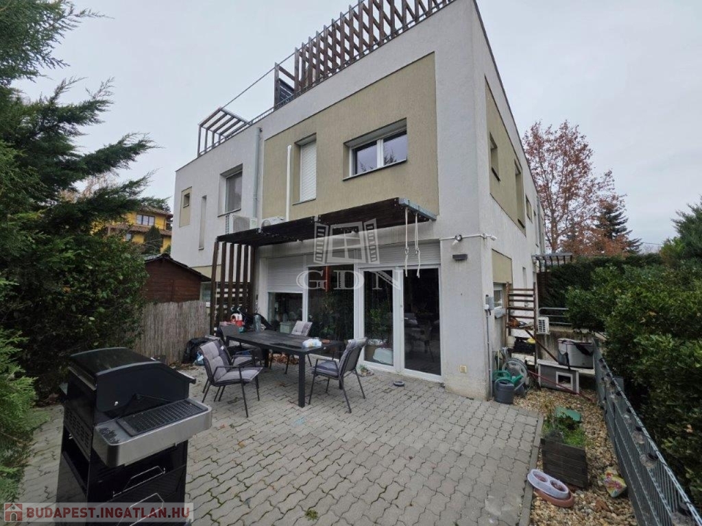 Kiadó, 3 szintes, 95 m²-es, teljesen felújított ikerházrész medencével és nagy kerttel, alacsony rezsi költséggel