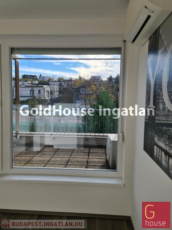 A tetőtérben egy további, 13 m²-es szoba helyezkedik el, amely saját, panorámás tetőterasszal rendelkezik.
