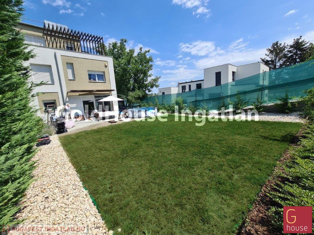 A lakáshoz tartozik egy 250 m²-es, kizárólagos használatú, parkosított kert, amelyet automata locsolórendszer lát el.