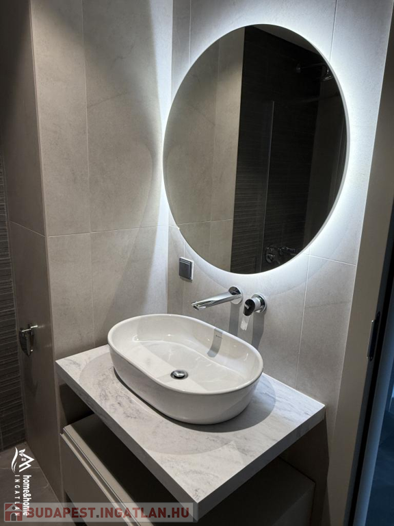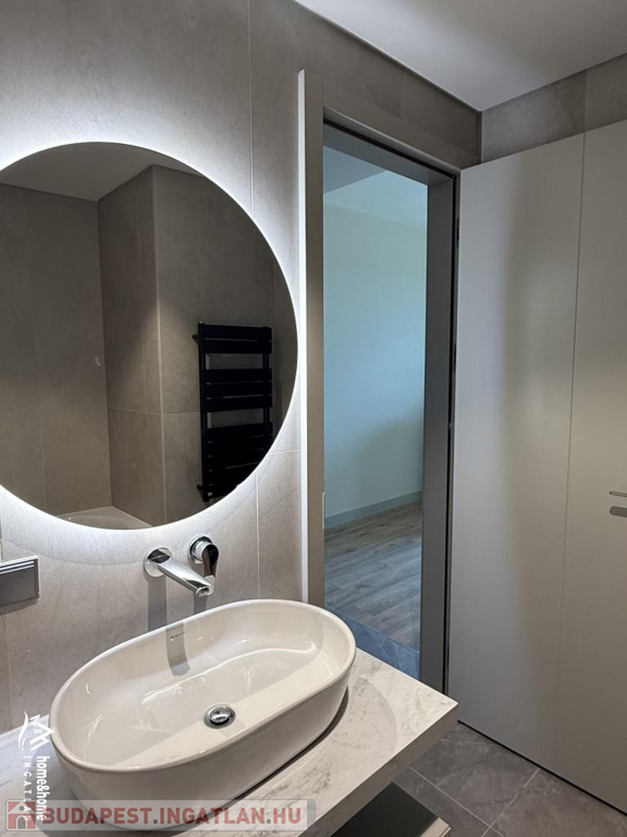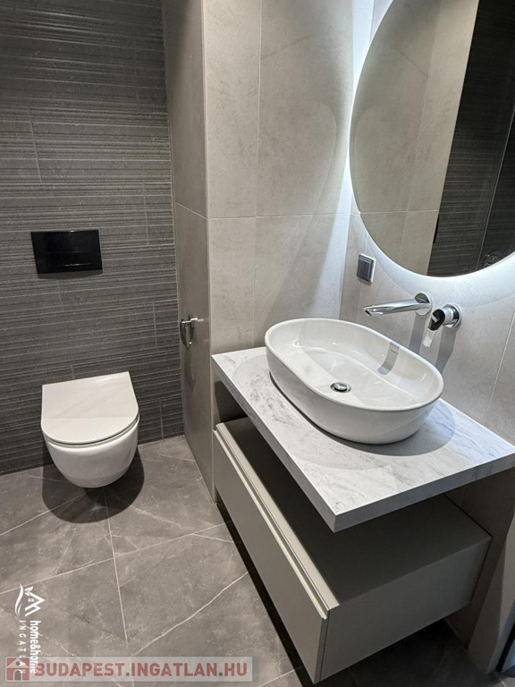 A lakás igényesen kialakított, világos, prémium burkolatokkal és modern szaniterekkel felszerelt.
