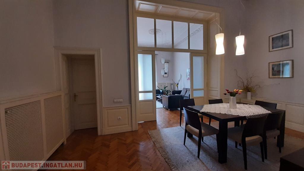 Szívesen ajánlom figyelmébe ezt a különleges Dunára és a Gellért-hegyre panorámás lakást a Belgrád rakparton. Az I. emeleti, 165 nm-es ingatlan 5 nm erkélyével ideális választás lehet családoknak, akár 2-3 gyermekkel is, főleg, ha szereti a nagy tereket, és kellemesen érzi magát a 4,3 m belmagasságú térben. A lakás három tágas, 2 utcai és 1 udvari szobával rendelkezik, valamint egy külön étkezőhelyiséggel, ami extra kényelmet nyújt a mindennapokra. Cirkó fűtése mellett a hűtő-fűtő klíma is segíti az éppen aktuális hónapban a hőmérséklet ideálissá tételét. Az ingatlan közös költsége: 35.000.- Ft havonta. Fűtés átalányban 50.000.- Ft, villanyra 10-12.000.- Ft körül kell költeni, és a vízszámla sem több havi 8-10 ezer Forintnál.
