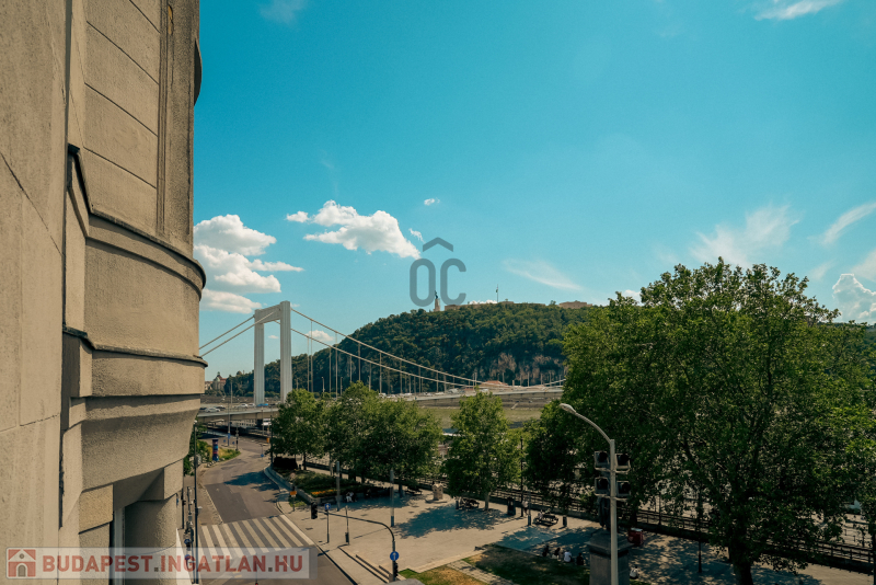 A belváros szivében, az Erzsébet híd pesti hídfőjétől néhány méterre, kiváló közlekedéssel, mégis távol a dugók zajától, zöld környezetben a Duna partján, egy igényesen felújított, 3. emeleti brutto 159 m2-es, 4 szobás, 2 fürdőszobás igazi polgári lakás, magas belmagassággal, szaunával és két erkéllyel keresi új lakóit!