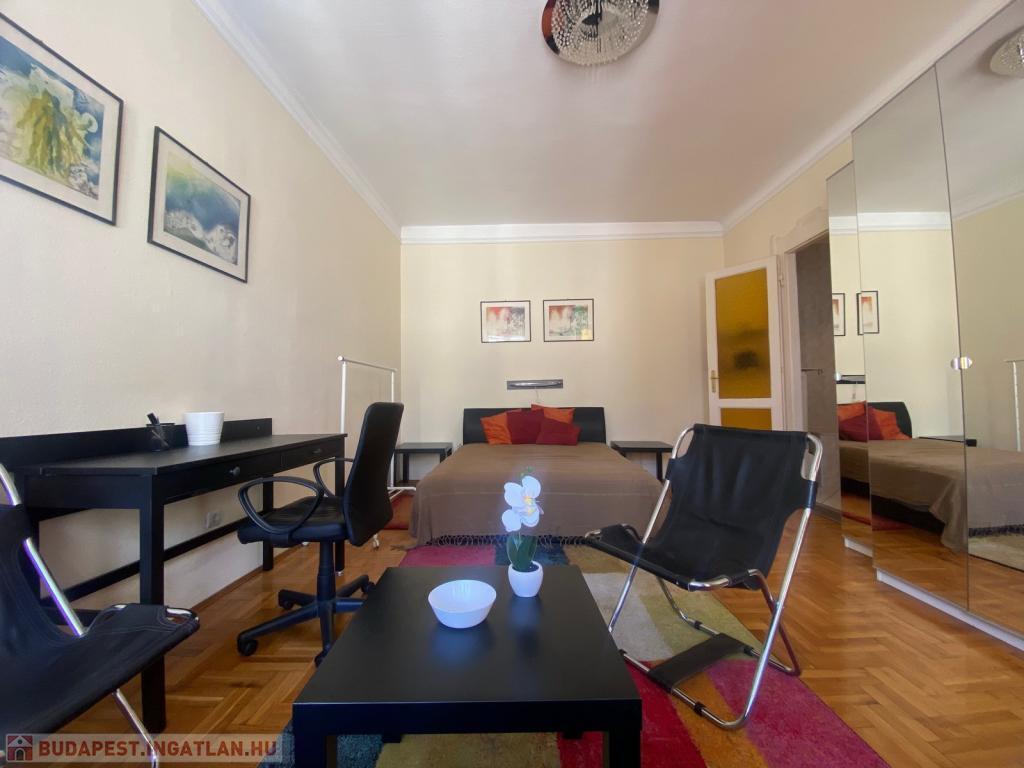 Budapest, V. kerületben, a belváros szívében, a Deák Ferenc térhez közel, a Gerlóczy utcában hosszú távra kiadó egy 33 m2-es, világos, csendes, V. emeleti garzonlakás.