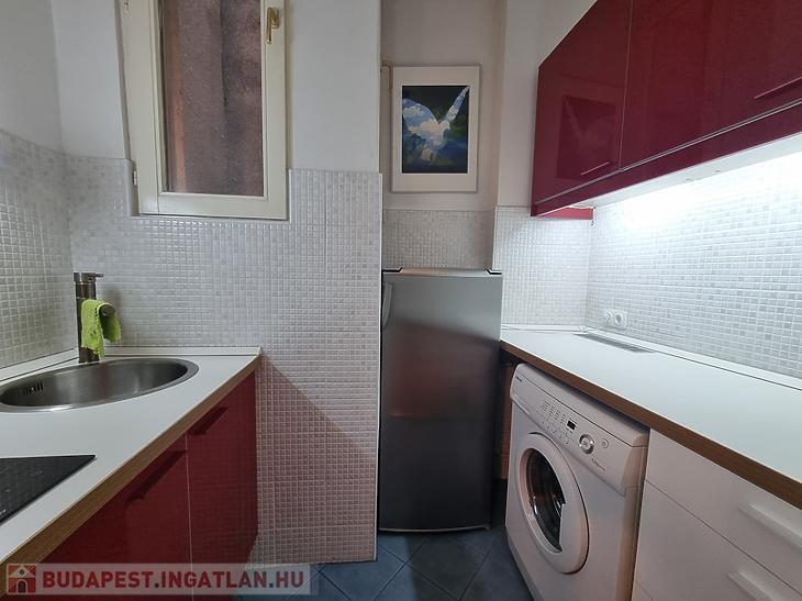 Kiadó tavaszig, kb. 6 hónapra egy világos, 2. emeleti, 38 m²-es, teljesen bútorozott és gépesített lakás Budapest szívében, az V. kerületben, a Vitkovics Mihály utcában.