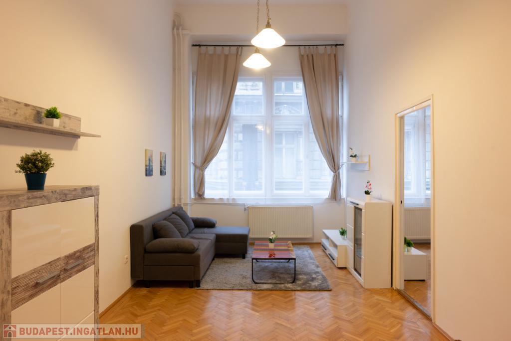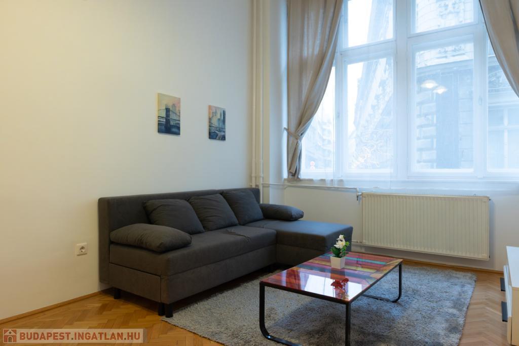 2 szobás (külön és egybe nyíló), 1. emeleti lakás a Váci utca régi, patinás részén hosszú távra kiadó.