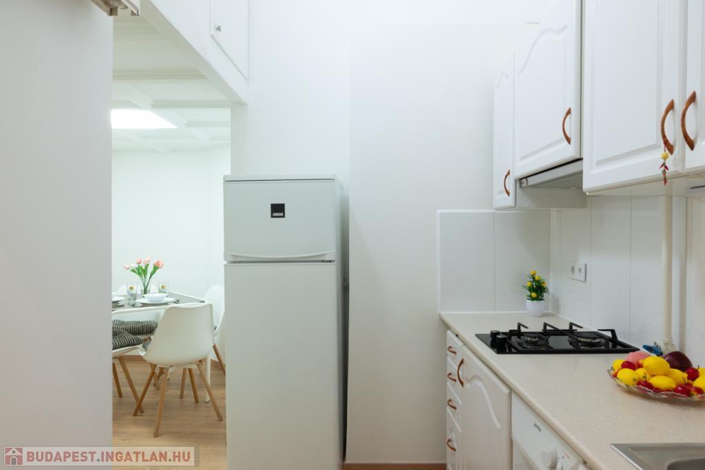 Az ingatlan gépesített és bútorozott. Mosógép, mosogatógép, gáz főzőlap megtalálhatók a lakásban.