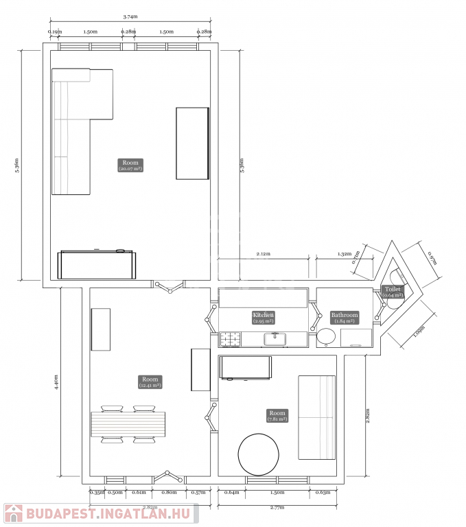 Az otthon 1+1 szobával rendelkezik, ideális lehet egyedülállók vagy kisebb családok számára.