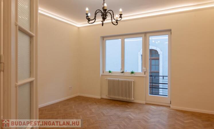 Kiadó Budapest, V.ker. - a Váci utca csendes és szép mellékutcájában - a NYÁRI PÁL utcában, rendezett, liftes ház II. emeletén egy FELÚJÍTOTT, 68 nm-es, 2,5 szobás, 2 erkélyes, BÚTOROZATLAN, légkondicionált lakás.