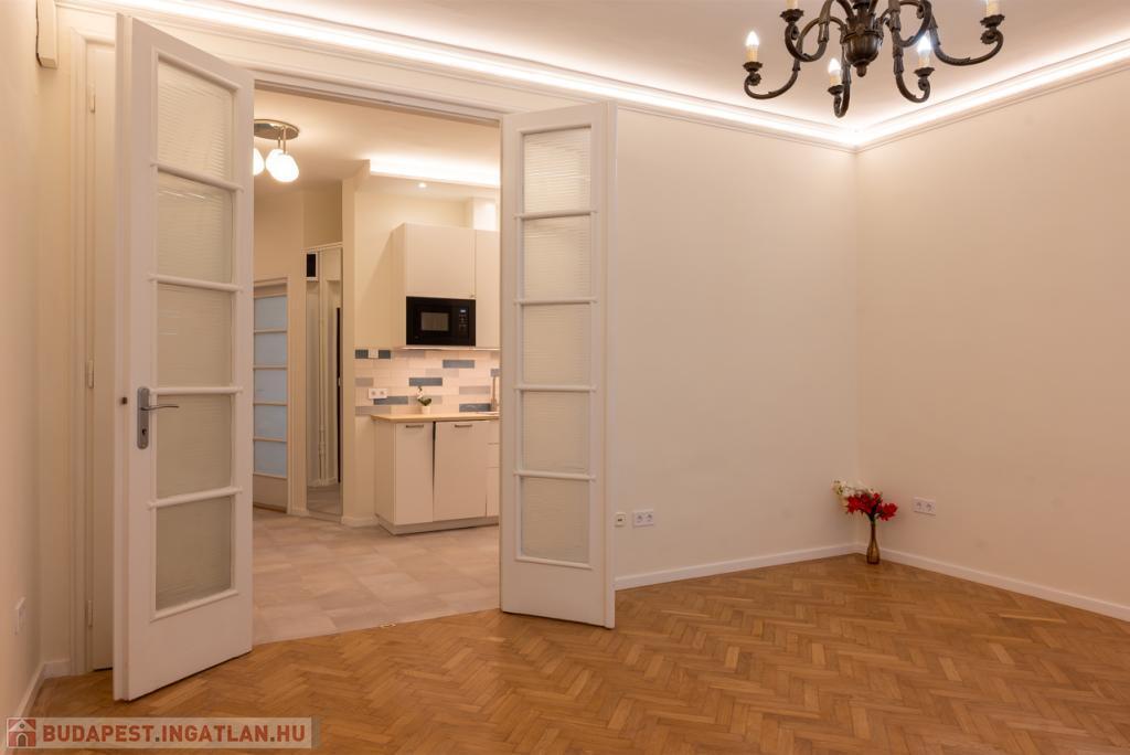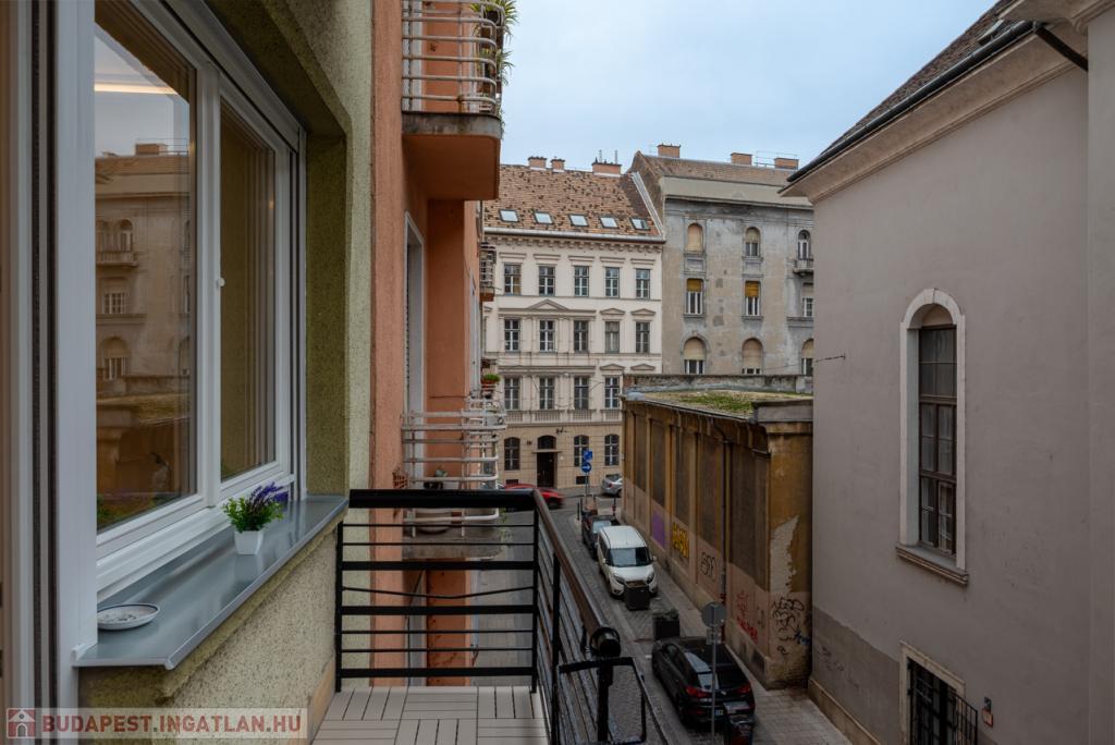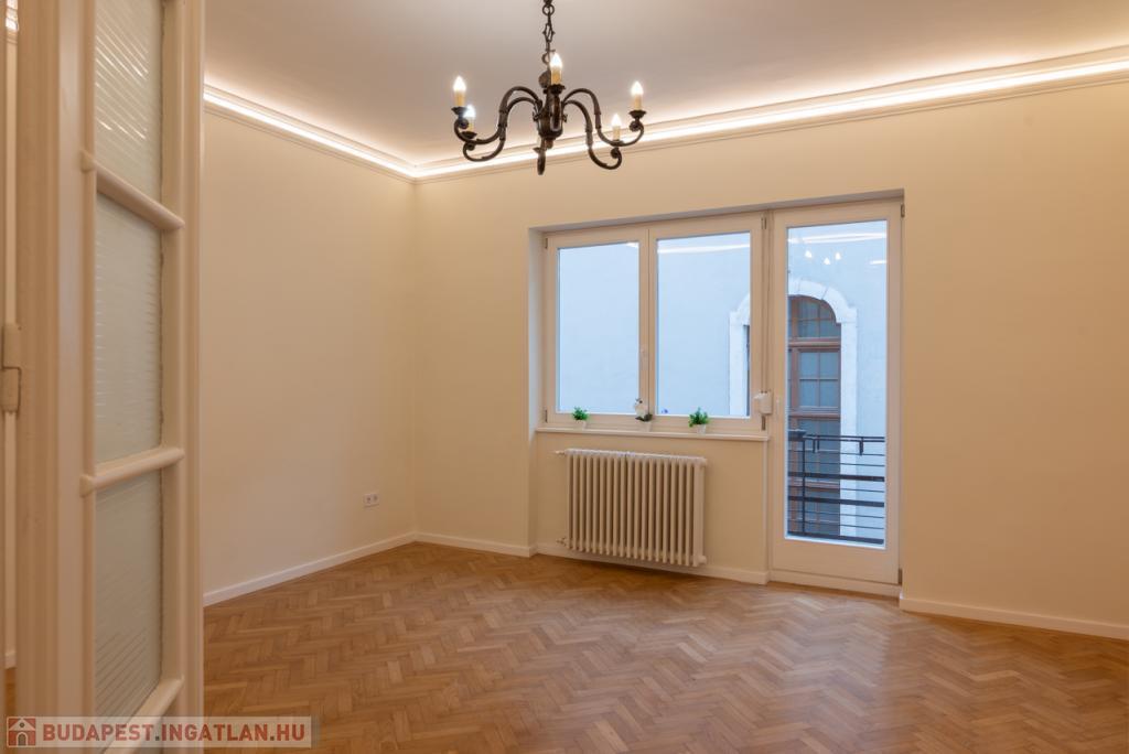 Kiadó Budapest, V.ker. - a Váci utca csendes és szép mellékutcájában - a NYÁRI PÁL utcában, rendezett, liftes ház II. emeletén egy FELÚJÍTOTT, 68 nm-es, 2,5 szobás, 2 erkélyes, BÚTOROZATLAN, légkondicionált lakás.