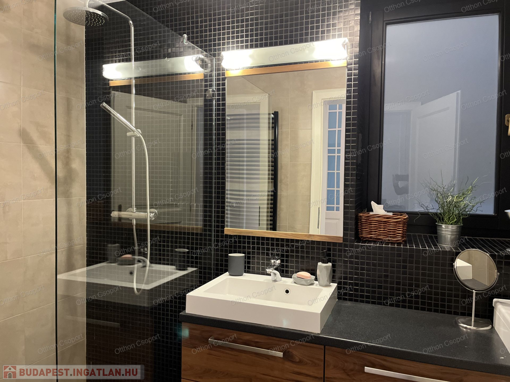 Az egyik hálószoba udvari, keletre néz, a másik háló és a nappali déli fekvésűek. A fürdőszoba zuhanyzós, a két WC közül az egyik külön helyiségben van.