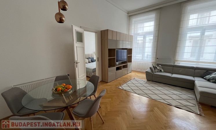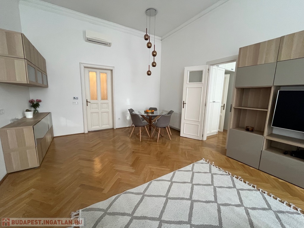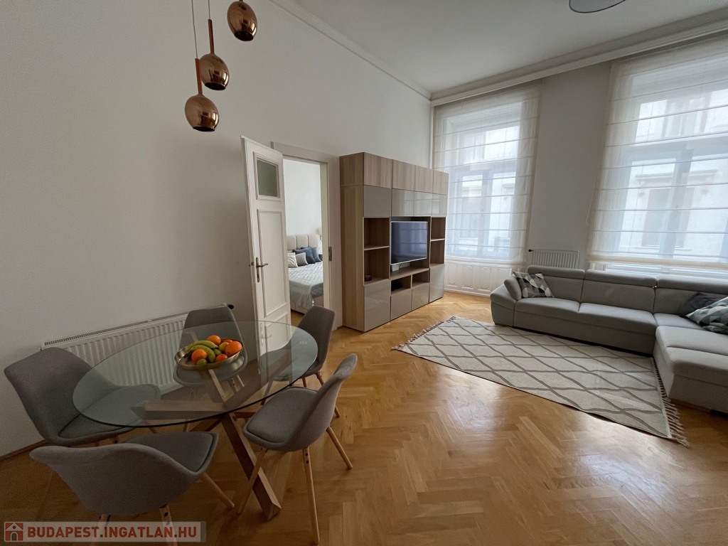 Egy 100 m²-es, gyönyörűen felújított lakásról van szó, egy elegáns, műemlék jellegű ház 2. emeletén (lifttel).