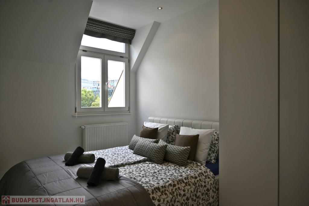 A belváros egyik legexkluzívabb részén, közvetlenül a Vörösmarty tér szomszédságában kínálunk bérbe egy 100 m-es, belső kétszintes, teljesen berendezett és modern lakást.