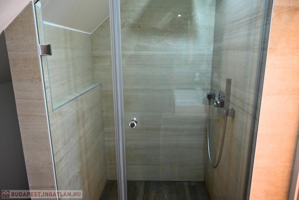 Fürdőszoba: esztétikus burkolatú, zuhanyzós, WC-vel